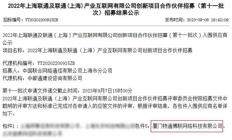 近日,上海聯(lián)通及聯(lián)通(上海)產(chǎn)業(yè)互聯(lián)網(wǎng)有限公司創(chuàng)新項(xiàng)目合作伙伴招募(第十一批次)入圍供應(yīng)商名單公示,我司成功入圍,物通博聯(lián)產(chǎn)品將在將在聯(lián)通供應(yīng)鏈平臺“公開市場”上架!