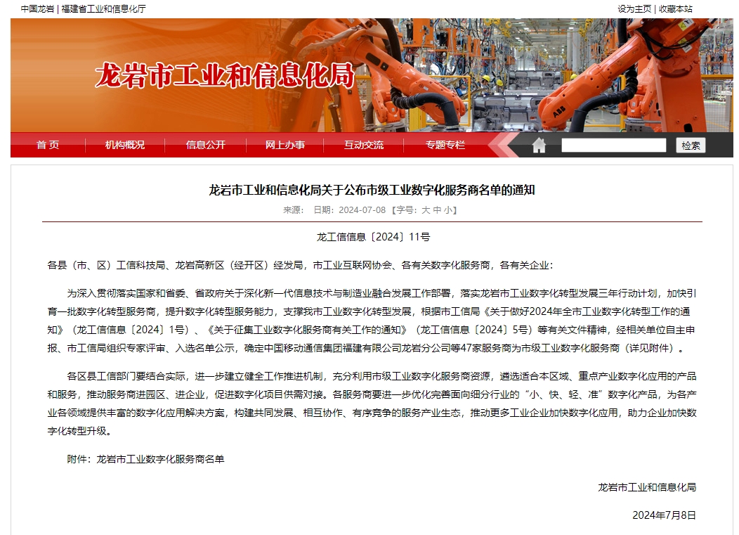 7月8日,龍巖市工信局公布了《龍巖市工業(yè)和信息化局關(guān)于公布市級(jí)工業(yè)數(shù)字化服務(wù)商名單的通知》,廈門物通博聯(lián)網(wǎng)絡(luò)科技有限公司成功入選“龍巖市市級(jí)工業(yè)數(shù)字化服務(wù)商”。