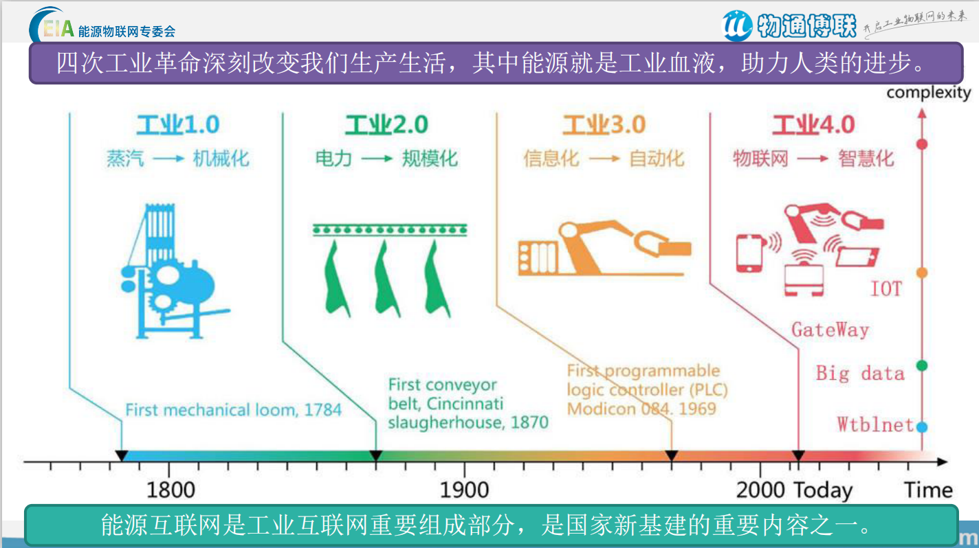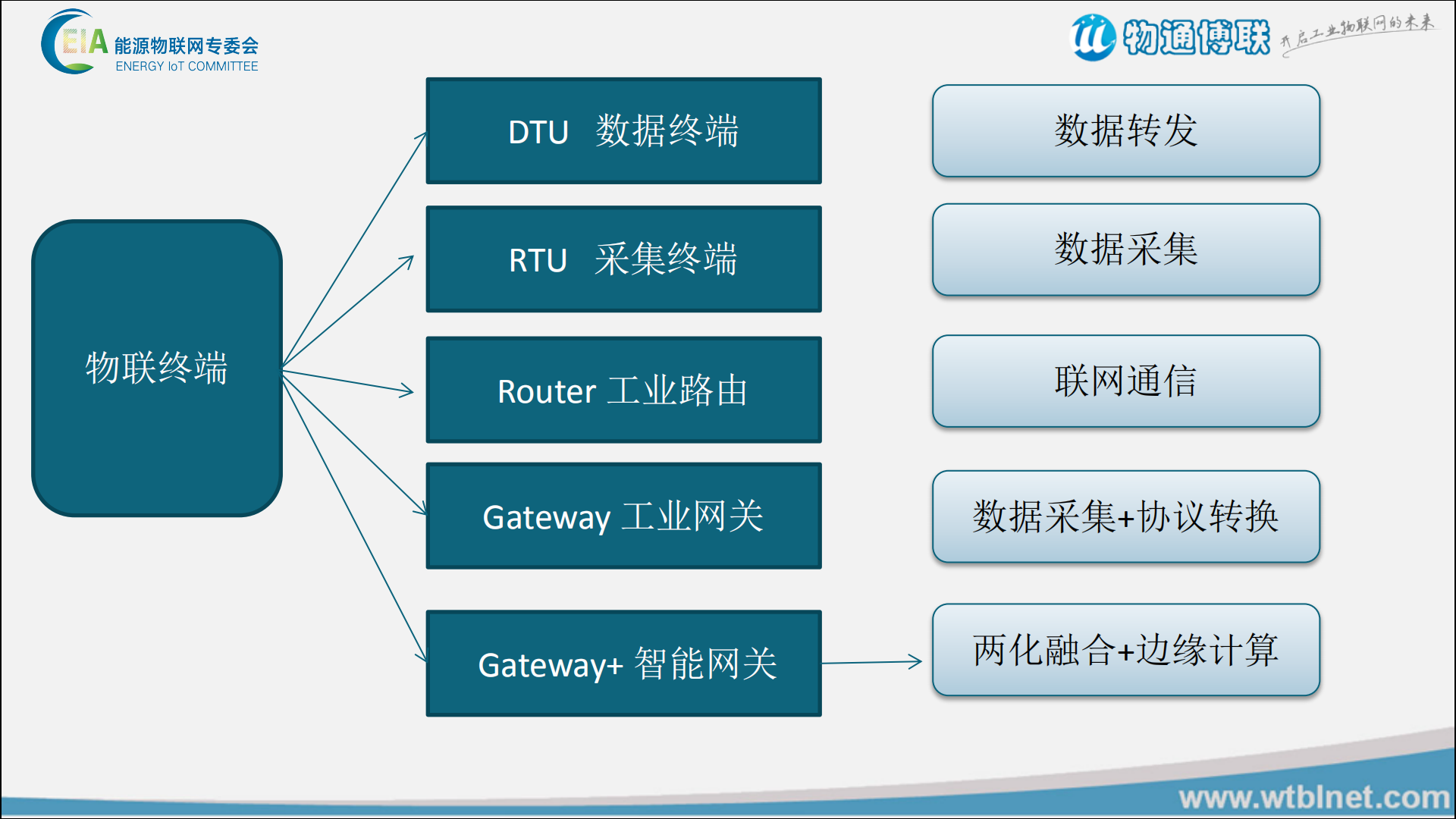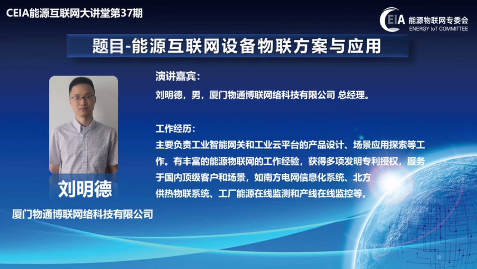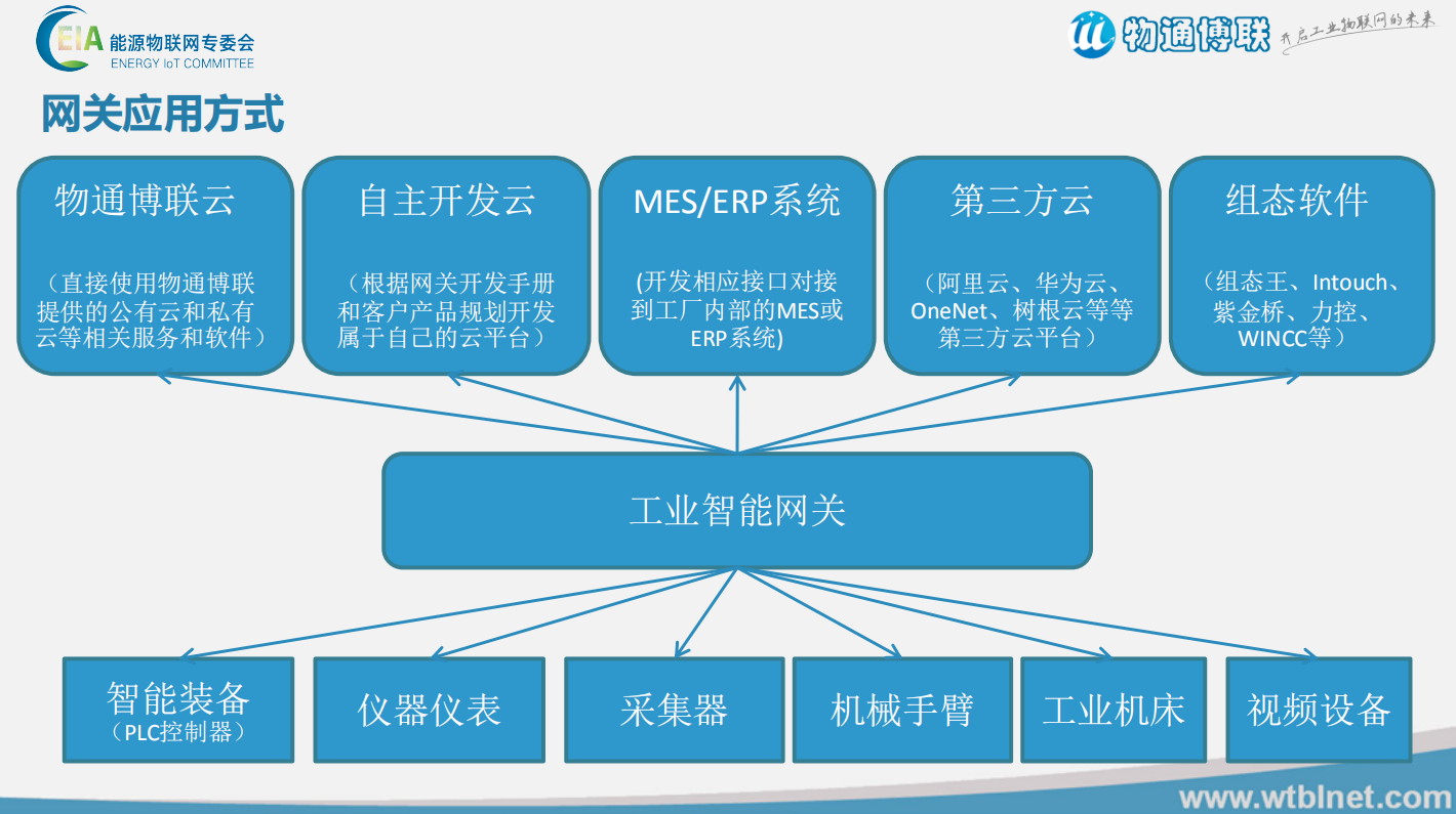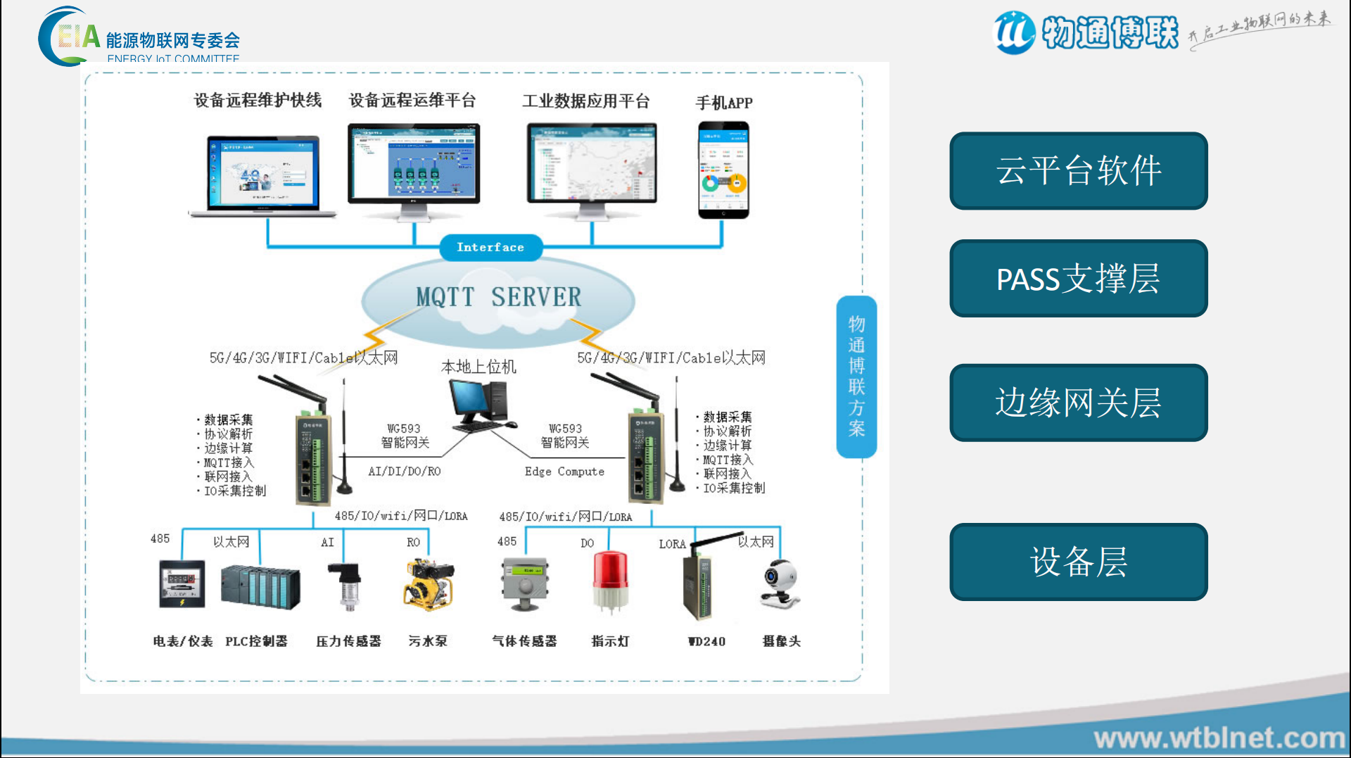 物通博聯(lián)·受邀國家能源互聯(lián)網(wǎng)產(chǎn)業(yè)及技術(shù)創(chuàng)新聯(lián)盟大講堂《能源物聯(lián)網(wǎng)》 時間:2020-09-02 17:22:22 2020年8月28日,物通博聯(lián)受邀國家能源互聯(lián)網(wǎng)產(chǎn)業(yè)及技術(shù)創(chuàng)新聯(lián)盟(CEIA)、CEIA能源物聯(lián)網(wǎng)專委會、CEIA能源數(shù)字化專委會,做專場《能源互聯(lián)網(wǎng)的設備聯(lián)網(wǎng)方案與應用》的演講。為能源領(lǐng)域的從業(yè)者分享關(guān)于能源互聯(lián)網(wǎng)領(lǐng)域的物聯(lián)網(wǎng)解決方案和物聯(lián)網(wǎng)產(chǎn)品。 2016年8月,國家能源局批復成立國家能源互聯(lián)網(wǎng)產(chǎn)業(yè)及技術(shù)創(chuàng)新聯(lián)盟(國能科技[2016]222號),由清華大學牽頭做好國家能源互聯(lián)網(wǎng)產(chǎn)業(yè)及技術(shù)創(chuàng)新聯(lián)盟的各項組織籌備工作。 物通博聯(lián)成立于2011年是國內(nèi)專注于工業(yè)4.0應用、工業(yè)物聯(lián)網(wǎng)產(chǎn)品研發(fā)的高科技企業(yè),在能源互聯(lián)網(wǎng)也深耕多年,特別在國家電網(wǎng)、北方供熱和智能工廠信息化建設中有豐富的經(jīng)驗和成功案例。 能源互聯(lián)網(wǎng)是新能源技術(shù)跟信息技術(shù)的深入結(jié)合為特征而催生的一種新的能源利用體系,它將能源生產(chǎn),能源消費有機結(jié)合在一起。其中物聯(lián)是基礎,采用先進的傳感器、智能的工業(yè)網(wǎng)關(guān)、智慧化的控制和軟件系統(tǒng),將能源生產(chǎn)端、能源消費端數(shù)以億計的設備、機器和系統(tǒng)連接起來,形成整套系統(tǒng);通過大數(shù)據(jù)、機器學習和預測提供能源效率和用能的利用率。 本次物通博聯(lián)演講主要從能源物聯(lián)網(wǎng)的需求分析、系統(tǒng)架構(gòu)、物聯(lián)產(chǎn)品和應用案例四個方面進行介紹分享。 能源是工業(yè)血液,伴隨工業(yè)4.0技術(shù)的應用,能源互聯(lián)網(wǎng)也是重要組成部分。 典型的工業(yè)互聯(lián)網(wǎng)架構(gòu)(現(xiàn)場設備+工業(yè)網(wǎng)關(guān)+PASS平臺+SAAS平臺) 邊緣計算和云端計算協(xié)同,通過智能化的網(wǎng)關(guān)實現(xiàn)數(shù)據(jù)采集,通過智慧化的平臺實現(xiàn)分析 供熱系統(tǒng)的組成(熱源廠+換熱站+熱用戶) 電網(wǎng)的組成(發(fā)電+變電+配電+用電) 物聯(lián)網(wǎng)無線技術(shù)演進(1G+2G+3G+4G+5G) 物聯(lián)網(wǎng)終端分類(Dtu->Rtu->Router->Gateway->Gatway+) 網(wǎng)關(guān)對接云平臺功能(物通博聯(lián)云平臺+自主開發(fā)云平臺、MES平臺、阿里平臺、組態(tài)王) 物通博聯(lián)·物聯(lián)網(wǎng)終端的介紹: 工業(yè)云網(wǎng)關(guān)(各種設備數(shù)據(jù)采集、4G/WIFI/以太網(wǎng)/5G /LORA聯(lián)網(wǎng),各種云平臺接入) 邊緣計算網(wǎng)關(guān)(邊緣計算、PLC數(shù)采、電表數(shù)集、水表數(shù)采、電力設備數(shù)采、IO采集) 物通博聯(lián)是一家工業(yè)智能化產(chǎn)品及應用服務提供商,專注于為設備制造商、智能工廠及行業(yè)項目等領(lǐng)域提供智能網(wǎng)關(guān)、設備快線及應用云平臺產(chǎn)品及方案。憑借在兩化融合、設備聯(lián)網(wǎng)、邊緣計算、大數(shù)據(jù)分析及工業(yè)建模等核心技術(shù)的積淀和優(yōu)勢,物通博聯(lián)作為工業(yè)4.0的先行者,產(chǎn)品得到國內(nèi)外頂級客戶和廣大中小企業(yè)的青睞,為客戶提供整體智能化解決方案,協(xié)助客戶實現(xiàn)數(shù)字化運營管理和工業(yè)互聯(lián)網(wǎng)新價值挖掘。 附: 【CEIA能源互聯(lián)網(wǎng)大講堂】第37期 回放視頻 演講主題:能源互聯(lián)網(wǎng)的設備物聯(lián)網(wǎng)方案及應用 演講嘉賓:廈門物通博聯(lián)網(wǎng)絡科技有限公司 劉明德 視頻鏈接:https://v.qq.com/x/page/a3145t8271l.html 內(nèi)容大綱: 1、能源互聯(lián)網(wǎng)的需求分析 2、能源互聯(lián)網(wǎng)的系統(tǒng)架構(gòu) 3、能源互聯(lián)網(wǎng)的產(chǎn)品介紹 4、能源互聯(lián)網(wǎng)的應用分享 上一篇:物通博聯(lián)作為工業(yè)互聯(lián)網(wǎng)先行者,受邀參加2020數(shù)字中國峰會及《工業(yè)互聯(lián)網(wǎng)論壇》 下一篇: 物通博聯(lián)在廈門兩岸股權(quán)交易中心 “閩西南科技板”成功掛牌 相關(guān)推薦 【展會邀請】物通博聯(lián)與您相約2025越南工業(yè)及制造業(yè)博覽會 2025-10-20 數(shù)據(jù)驅(qū)動,智造未來丨萬暉五金設備數(shù)采項目啟動會圓滿舉行 2025-09-19 向新求質(zhì)|物通博聯(lián)獲評2024發(fā)展新質(zhì)生產(chǎn)力“影響力企業(yè)”,總經(jīng)理劉明德獲評2024發(fā)展新質(zhì)生產(chǎn)力“領(lǐng)軍人物” 2025-04-25 邀請函丨物通博聯(lián)邀您相約福州國際數(shù)字產(chǎn)品博覽會 2025-04-17 相關(guān)產(chǎn)品 工業(yè)智能網(wǎng)關(guān) 物通博聯(lián)·WG系列工業(yè)智能網(wǎng)關(guān)是一款支持采集各種PLC,儀器儀表,水環(huán)保,電力設備,CNC等各種工業(yè)設備數(shù)據(jù),具有協(xié)議解析,邊緣計算的高可靠性工業(yè)智能網(wǎng)關(guān),是構(gòu)... 工業(yè)數(shù)采終端 物通博聯(lián)·WD系列工業(yè)數(shù)采終端,主要實現(xiàn)對現(xiàn)場工業(yè)設備的數(shù)字量DI、DO,模擬量AI,AO的采集和控制,實現(xiàn)LORA本地組網(wǎng)和4G數(shù)據(jù)上云