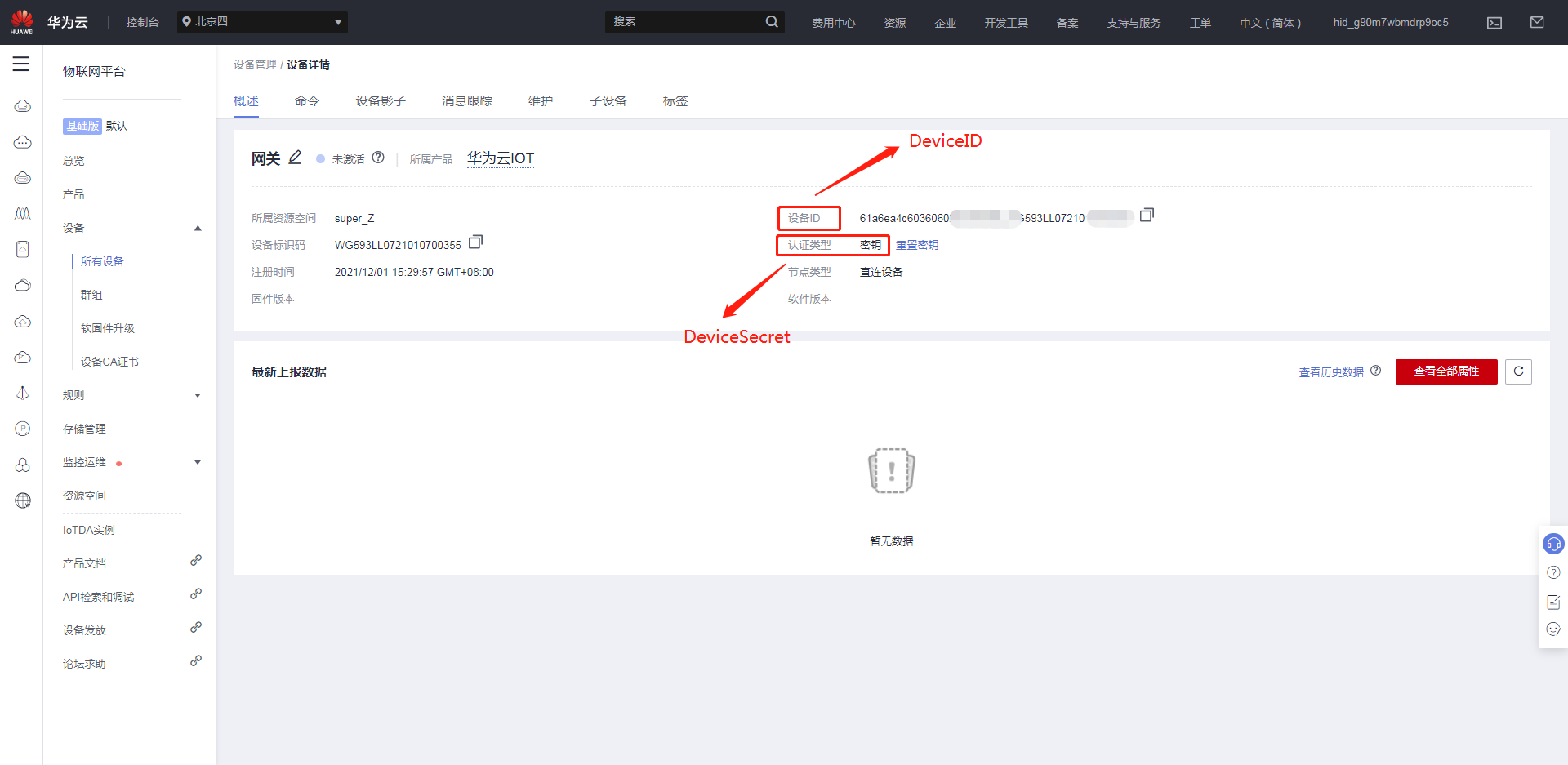 DeviceID為之前在華為云IOT所有設(shè)備上注冊(cè)的設(shè)備生成的設(shè)備ID;