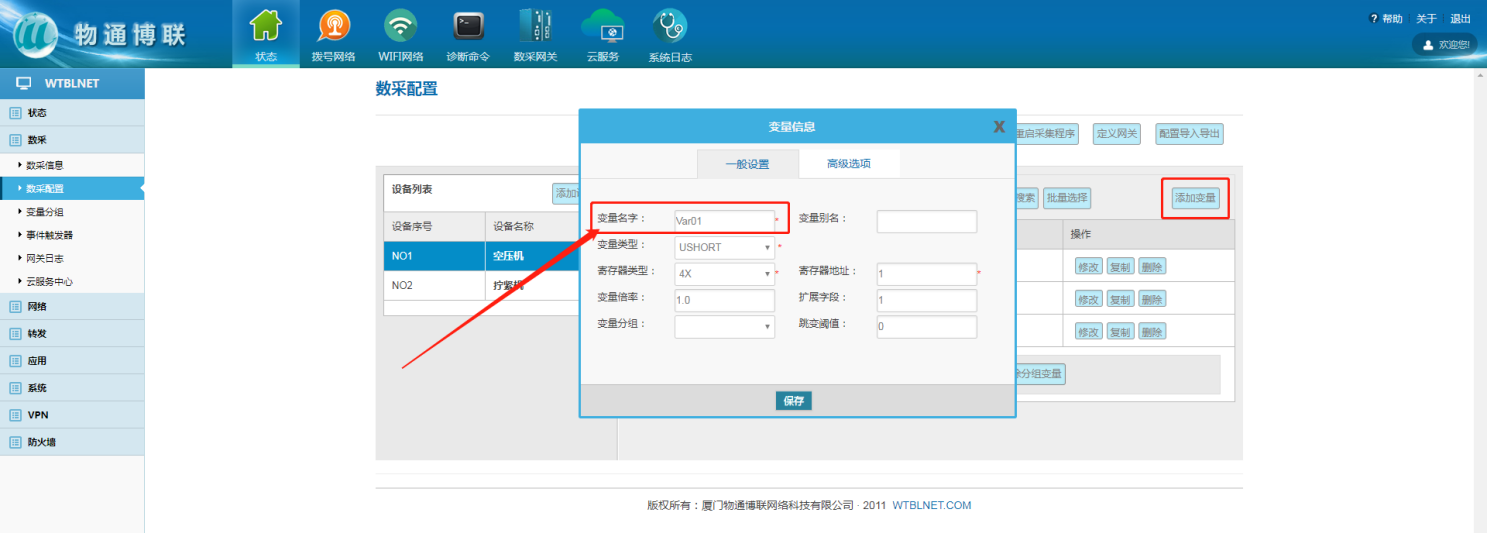 添加變量名稱,網(wǎng)關(guān)端“變量名稱”與華為云IOT的“屬性名稱”對(duì)應(yīng);