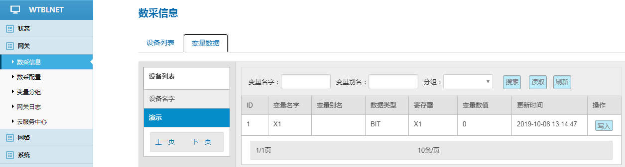 網(wǎng)關(guān)---數(shù)采配置---添加設備---添加變量---重啟采集程序并生效新的配置