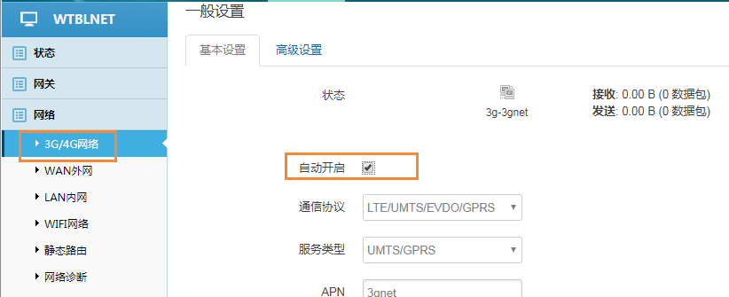 路徑:網(wǎng)絡---3G/4G----自動開啟---保存并啟用。