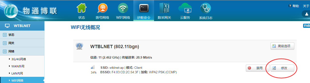 P.s.如WIFI已啟用則進入修改,未啟用則需啟用后在進入修改