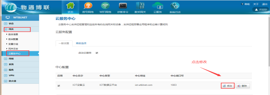 1、網(wǎng)關云中心配置