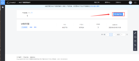 可進入OneNET平臺的對應產(chǎn)品中獲取網(wǎng)關云服務中心所需要填寫的ID和KEY。