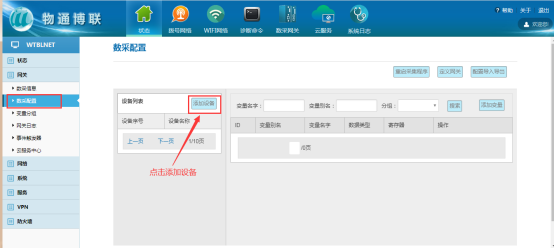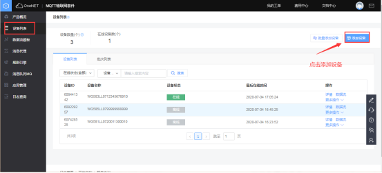 在目錄欄中選擇“設備列表”,然后點擊添加設備