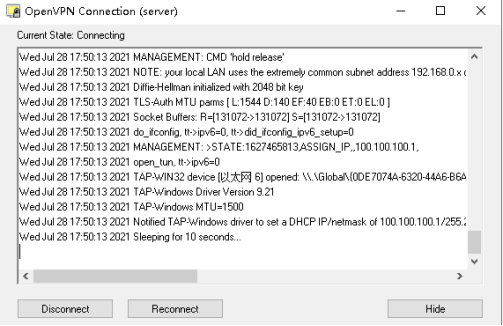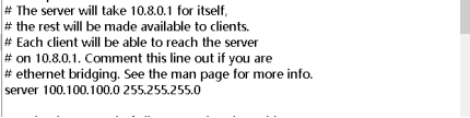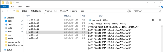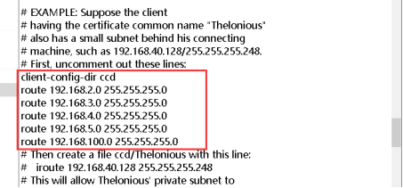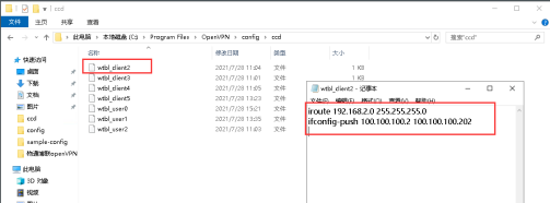 ifconfig-push 100.100.100.2 100.100.100.202 :為隧道地址的兩端,默認網(wǎng)關(guān)這端的隧道地址為100.100.100.2