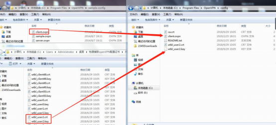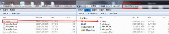將對應(yīng)的ca證書、本地證書、本地私鑰、client. ovpn放到config文件夾下