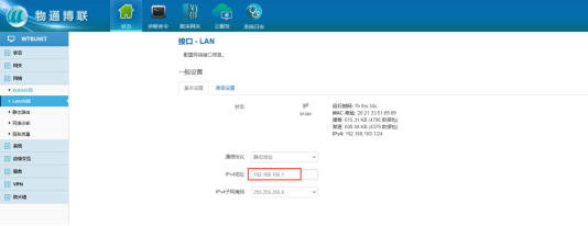 3、修改網(wǎng)關(guān)的LAN口IP