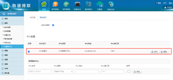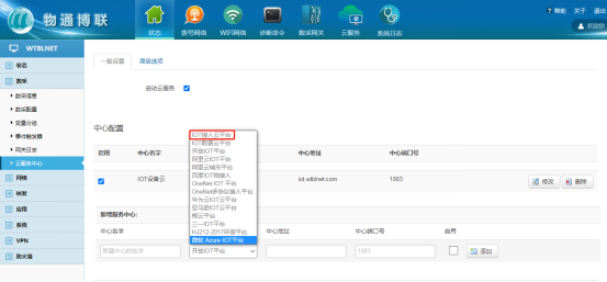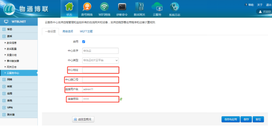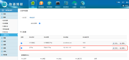 點擊修改后進入中心配置界面,填寫對應(yīng)的MQTT連接參數(shù);