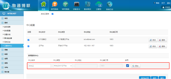 選擇第三方設(shè)備接入平臺類型,勾選啟用,點擊添加;