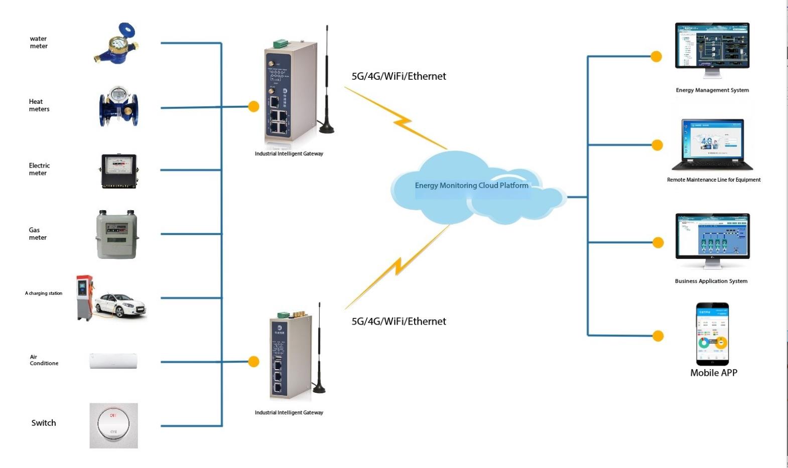 In response to this, WideIOT provides an IoT solution integrating "energy data acquisition + visual management". By connecting smart water meters, smart electricity meters, heat meters, flow meters, PLC and other equipment, it can collect production data, equipment data, energy consumption data in real time, connect to the management platform to realize visual display, and automatically alarm when abnormal faults occur, so as to quickly locate and take measures to ensure production safety, high efficiency and energy saving.