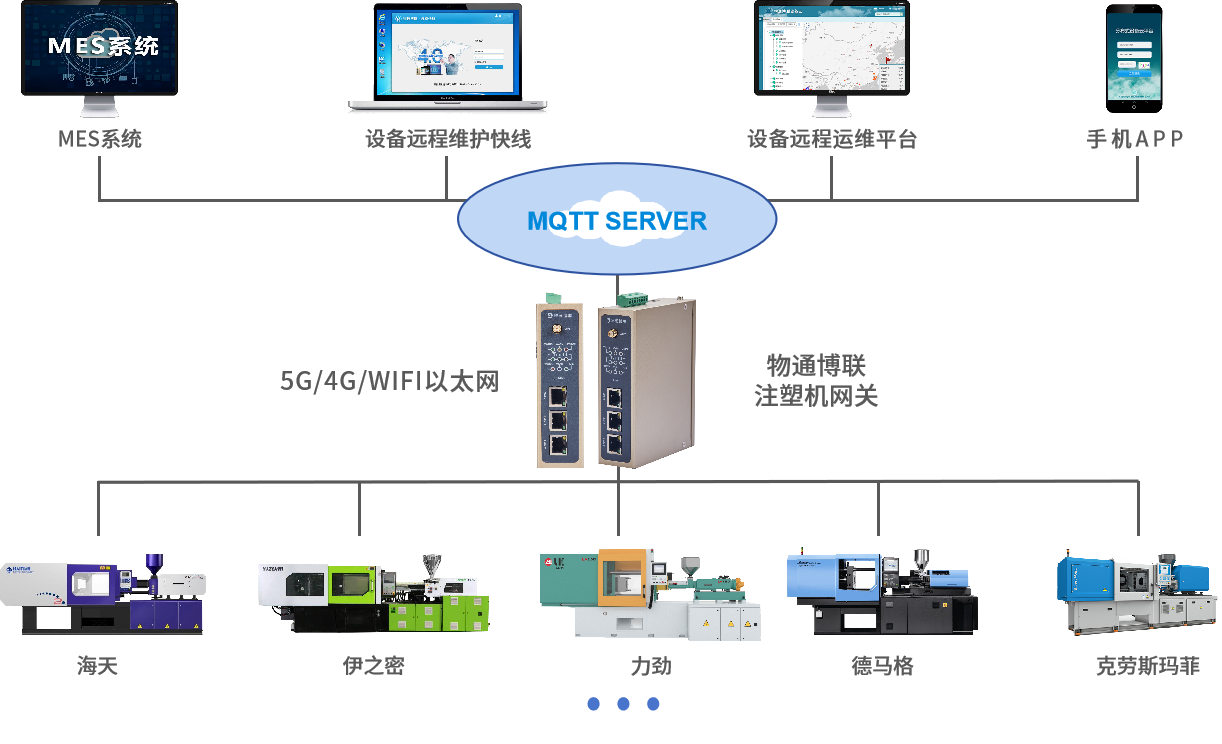 數(shù)據(jù)上云:實(shí)現(xiàn)對(duì)各種種類(lèi)的注塑機(jī)設(shè)備的遠(yuǎn)程接入、遠(yuǎn)程管理、遠(yuǎn)程監(jiān)控和數(shù)據(jù)應(yīng)用