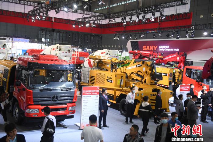 2021年5月19日,2021長(zhǎng)沙國(guó)際工程機(jī)械展覽會(huì)上展出的工程機(jī)械產(chǎn)品。(資料圖片) 中新社記者 楊華峰 攝