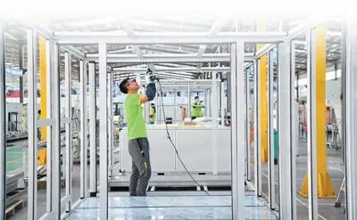 近年來(lái),江西省大力培育專(zhuān)精特新企業(yè),給予企業(yè)新增融資貼息、貼保等補(bǔ)貼支持。圖為在贛州市贛縣區(qū)的一家環(huán)境科技企業(yè)內(nèi),工人在生產(chǎn)線(xiàn)上趕制出口國(guó)外的智能中央空調(diào)零部件。 朱海鵬攝(影像中國(guó))