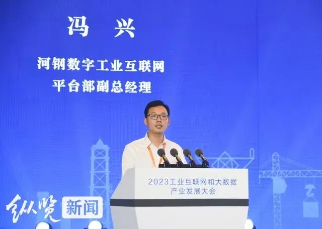河鋼數(shù)字工業(yè)互聯(lián)網(wǎng)平臺(tái)部副總經(jīng)理馮興在活動(dòng)現(xiàn)場(chǎng)發(fā)表演講。王冬攝