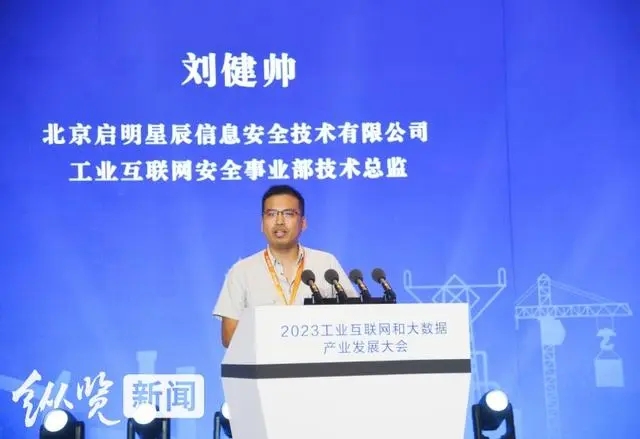 北京啟明星辰信息安全技術(shù)有限公司工業(yè)互聯(lián)網(wǎng)安全事業(yè)部技術(shù)總監(jiān)劉健帥在活動(dòng)現(xiàn)場(chǎng)發(fā)表演講。王冬攝