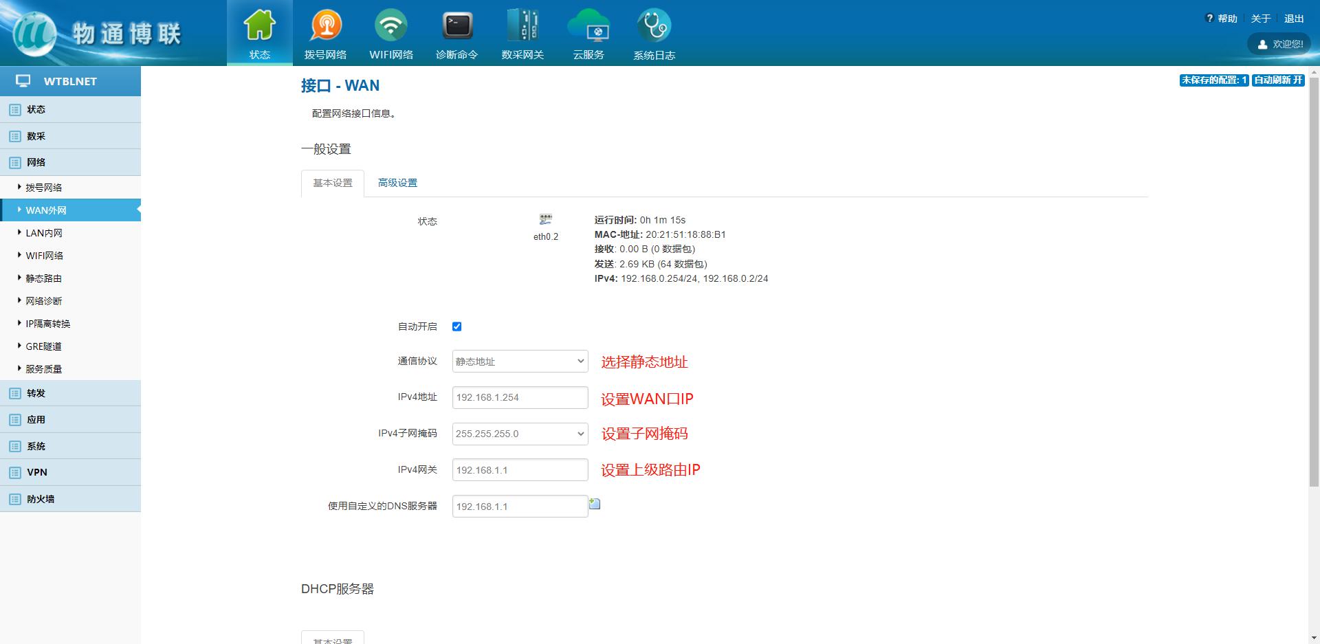 1、設(shè)置靜態(tài)WAN