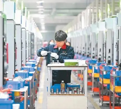 在位于浙江省寧波市的夏廈精密制造公司5G智能車間內(nèi),機械手臂正在作業(yè)。資料圖片