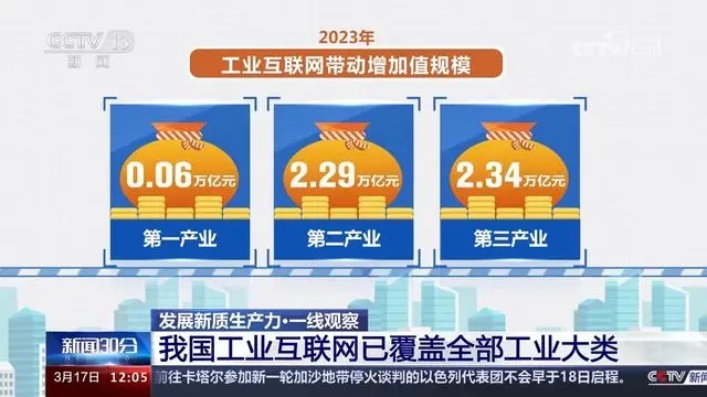 目前,我國有一定影響力的工業(yè)互聯(lián)網(wǎng)平臺超340個,連接近億臺套工業(yè)設(shè)備;融入49個國民經(jīng)濟大類,覆蓋全部工業(yè)大類;85%的生產(chǎn)線效率明顯提升,生產(chǎn)時間縮短20%。2023年,帶動三大產(chǎn)業(yè)增加值規(guī)模達0.06萬億元、2.29萬億元、2.34萬億元,自身核心產(chǎn)業(yè)規(guī)模達1.35萬億元。