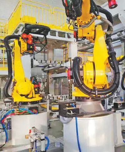河北保定長(zhǎng)城精工自動(dòng)化工廠,5G—A汽車柔性產(chǎn)線上,龐大的機(jī)械臂吸起汽車頂蓋,空中盤旋一圈,便涂抹完頂蓋上的膠條,一套動(dòng)作行云流水。