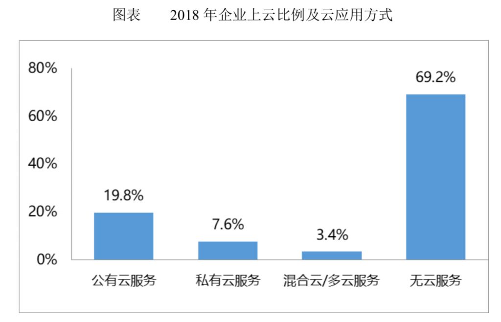 時(shí)下,企業(yè)關(guān)于云服務(wù)的需求也在日漸添加,據(jù)研究報(bào)告顯現(xiàn),現(xiàn)階段有30.8%的企業(yè)選用了云服務(wù)方法。相比前幾年企業(yè)的上云比例明顯提高。其間選用公有云服務(wù)的企業(yè)比例為19.8%,公有云服務(wù)模式已經(jīng)成為大多數(shù)企業(yè)的首選上云方法。