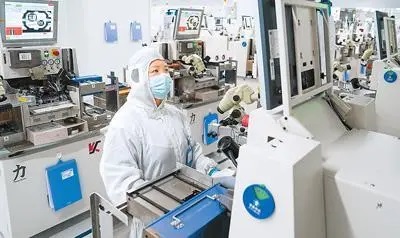 11月3日,在江蘇南通如東經(jīng)濟(jì)開發(fā)區(qū)的南通寧芯微電子有限公司,工作人員在裝片焊線車間內(nèi)作業(yè)。新華社記者 李博 攝