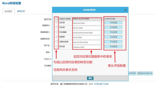在該界面勾選以啟用對應(yīng)表的轉(zhuǎn)發(fā)功能,并且可以設(shè)置表名稱以及表頭字段名稱