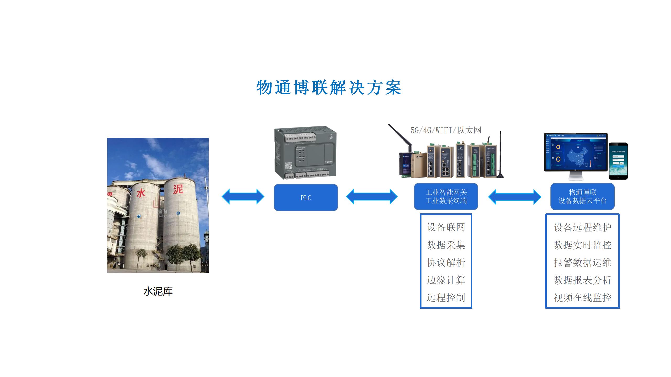 水泥行業(yè)無線數(shù)采是智能化轉(zhuǎn)型的基礎,通過“數(shù)據(jù)采集-傳輸-分析-應用”閉環(huán),能夠推動生產(chǎn)從“經(jīng)驗驅(qū)動”向“數(shù)據(jù)驅(qū)動”轉(zhuǎn)變,最終實現(xiàn)降本增效、綠色安全、管理升級的目標。對此,基于工業(yè)無線數(shù)采網(wǎng)關,物通博聯(lián)面向水泥行業(yè)全流程提供高效可靠的物聯(lián)網(wǎng)解決方案。