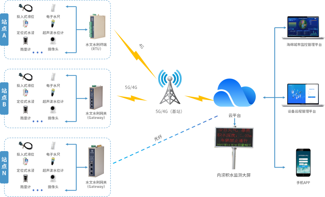 前端監(jiān)測(cè)設(shè)備:包括水位計(jì)、雨量筒、高清攝像頭等,用于實(shí)時(shí)采集道路積水?dāng)?shù)據(jù)及現(xiàn)場(chǎng)視頻圖像。