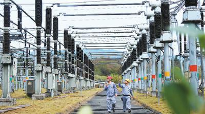 今年夏季,全國(guó)用電負(fù)荷快速增長(zhǎng),各地電力穩(wěn)發(fā)滿發(fā)。圖為8月25日,在四川省達(dá)州市,技術(shù)人員巡查燃?xì)獍l(fā)電公司廠區(qū)升壓站。 鄧良奎攝(人民視覺(jué))