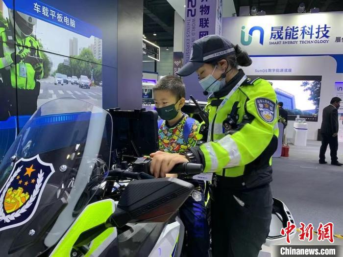 小朋友體驗(yàn)搭載智能裝備的警用摩托車?!O權(quán) 攝