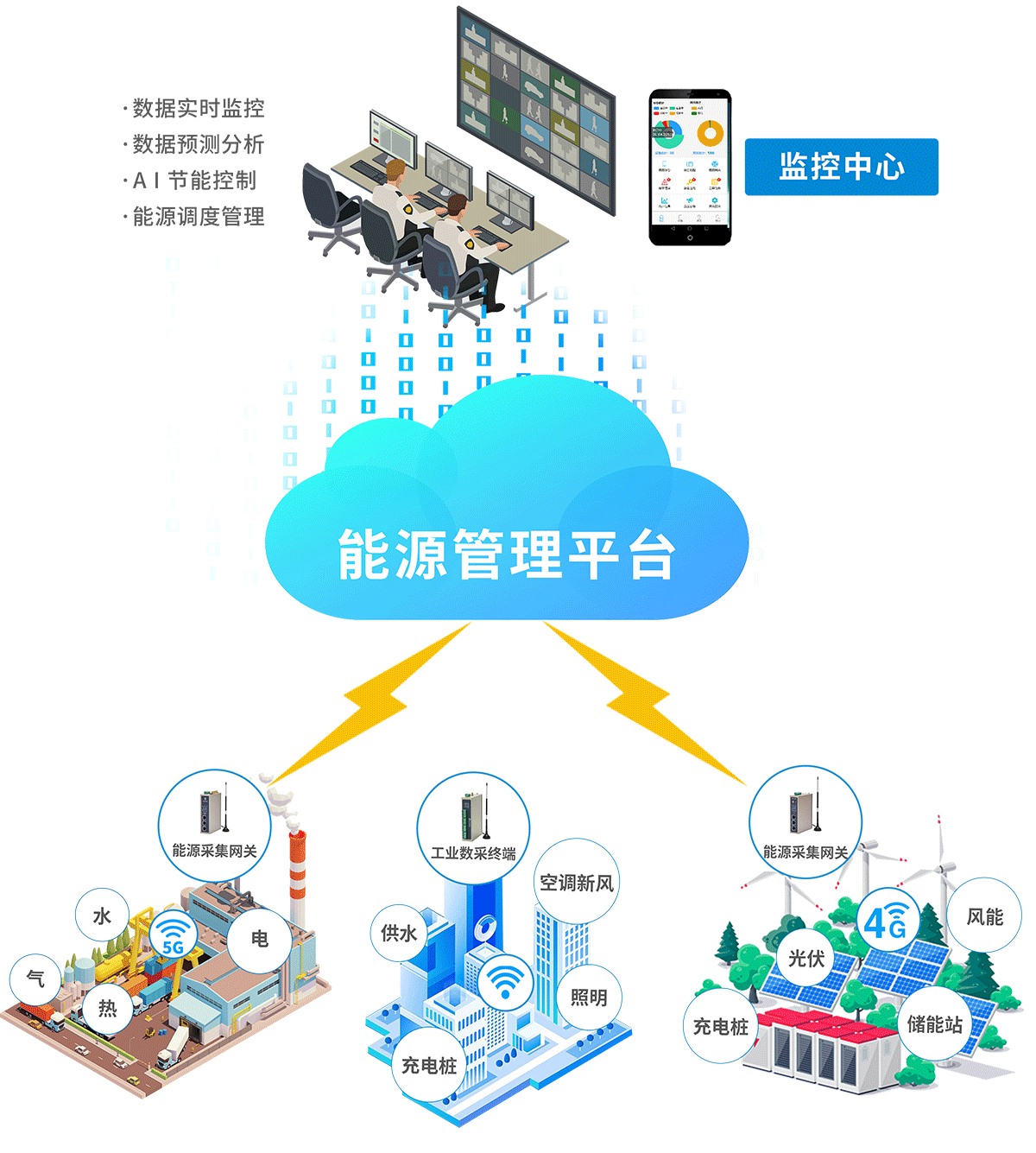 適用于工廠、園區(qū)、小區(qū)、電力、樓宇、公共設(shè)施等多種用能場景。