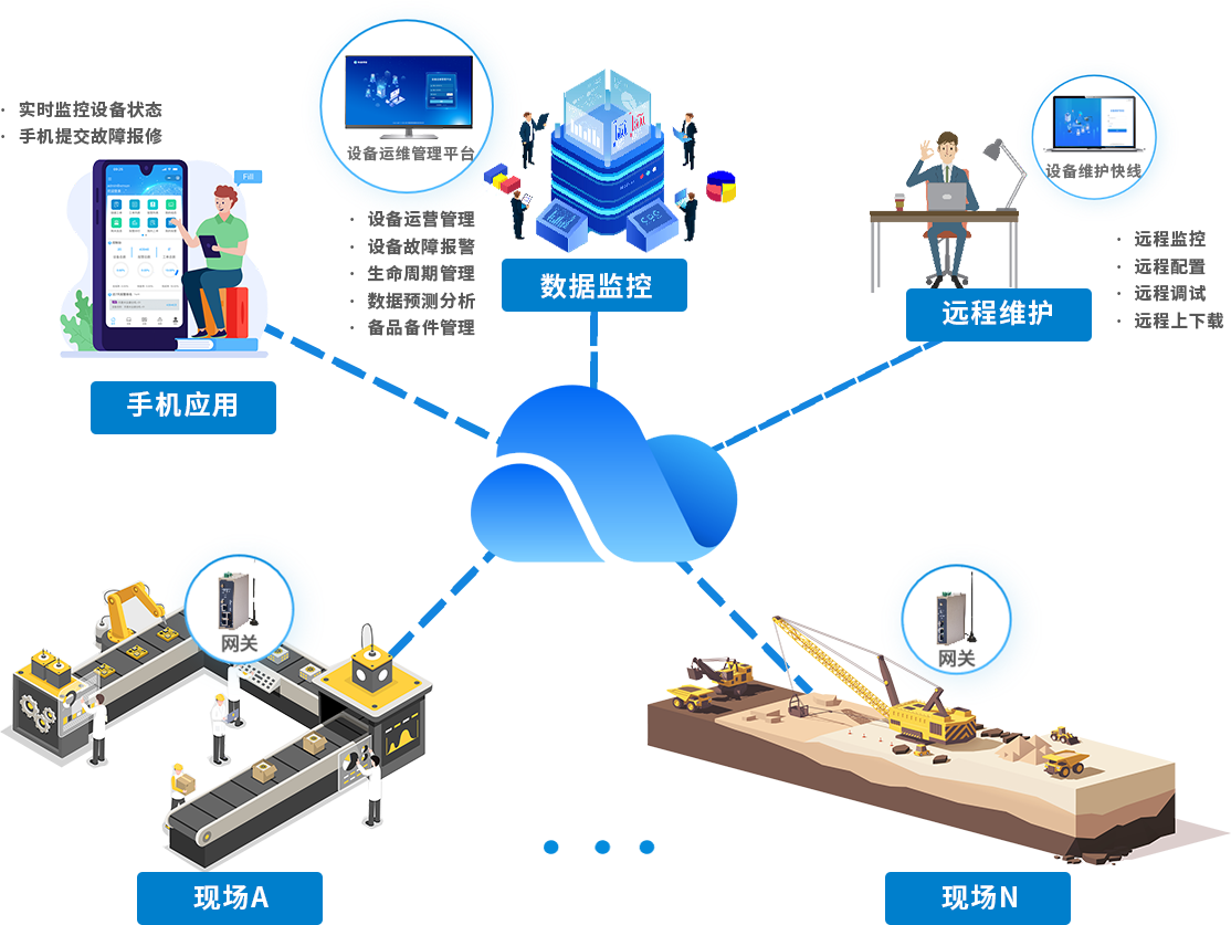 在全球化背景下,設(shè)備制造商面臨設(shè)備管理難、運維成本高、市場競爭大等挑戰(zhàn)。物通博聯(lián)提供工業(yè)智能網(wǎng)關(guān)+設(shè)備運維管理平臺+設(shè)備維護快線,實現(xiàn)設(shè)備監(jiān)控、故障報警、遠程運維、數(shù)據(jù)分析、預(yù)測性維護及全生命周期管理,構(gòu)建覆蓋國內(nèi)外的智能服務(wù)平臺,助力實現(xiàn)設(shè)備智能化升級、提高管理效率、降低運維成本、提高企業(yè)服務(wù)效率和質(zhì)量。